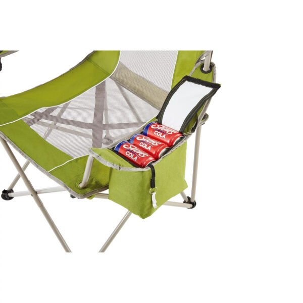 Enjoy the ultimate comfort experience in the Ozark Trail Oversized Mesh chair with Cooler. The integrated breathable mesh will keep you cool on a hot summer day. To cool you off on those hot days, the chair features a built-in cupholder and a 3 can insulated cooler with a dual zipper with an attached aluminum bottle opener. The durable power-coated steel frame has a 400-pound weight capacity for adults. With a built-in universal umbrella holder, you can seek shade and stay dry from the rain. The Ozark Trail Oversized Mesh Chair with Cooler collapses to a stand-alone position and features two built-in carry straps for easy transport with or without the carry bag. The Ozark Trail Oversized Mesh Chair with Cooler is the perfect chair for any camping trip, concert, sporting event or just to have at home on your patio!
